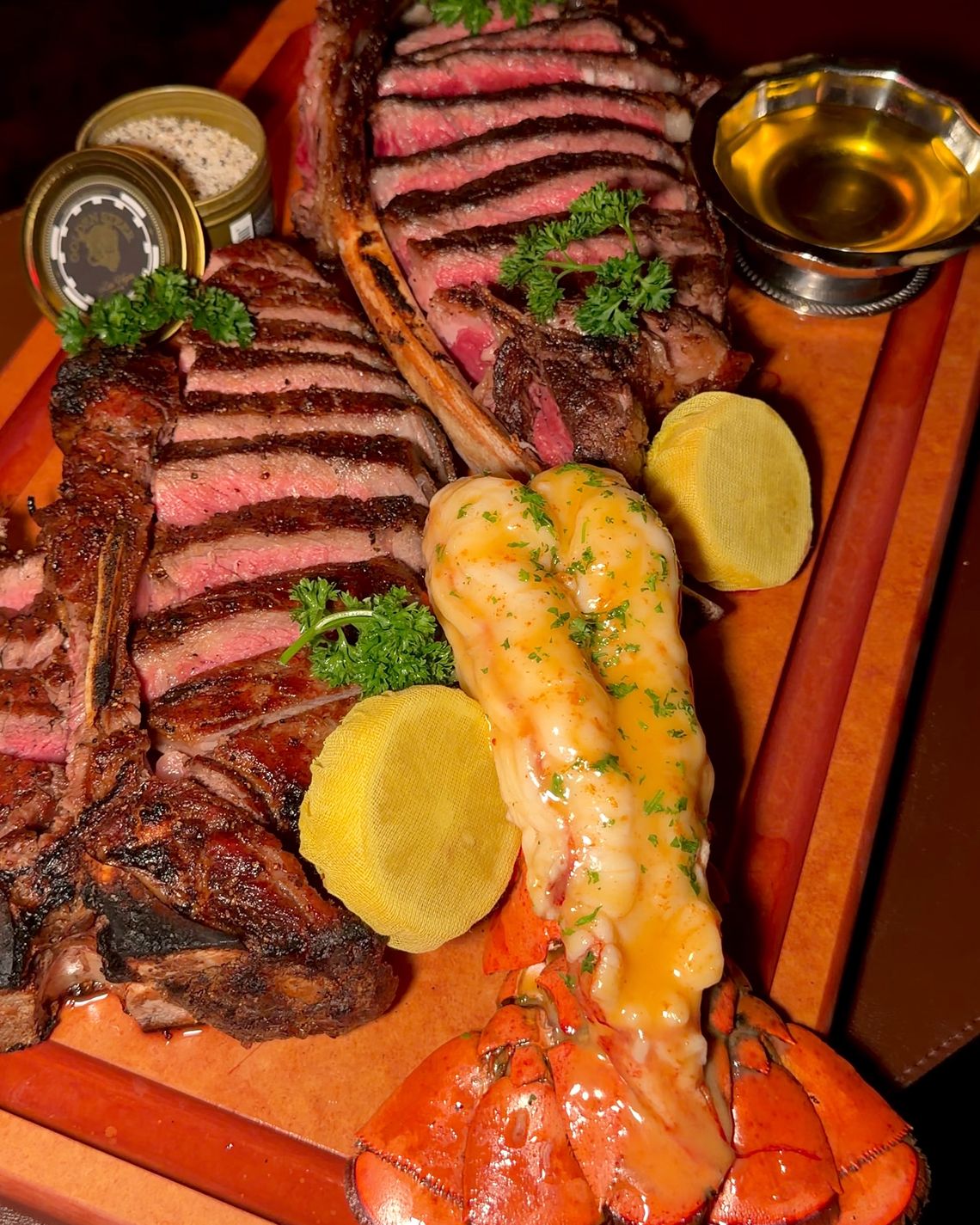 Several of the cuts can be ordered as surf and turf — I watched a couple at a nearby table delightedly suck crab butter off their fingers — but the oversize, family-style steaks are the better way to splurge. The à la carte options I sampled (a wet-aged rib eye and a brawnier dry-aged Kansas City strip) seemed a little meager for a properly over-the-top steakhouse experience, something I can’t say about 50 ounces of dry-aged porterhouse. Nicely prepared to a respectable medium rare, it was a fine bit of gluttony, even if it didn’t evince the deep bleu-cheese funk of the best dry-aged meat.