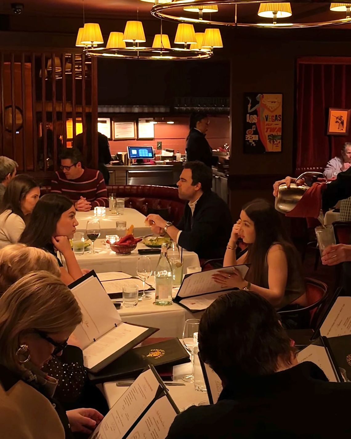 This town is hardly immune to the charms of a loving homage: Balthazar, the ultimate ersatz brasserie, has become such an authentic inauthenticity that Parisians come here to visit it. Even so, I was surprised to find that crowds turned up for the promise of a Disneyfied Vegas. A hungry, mostly male clientele in quarter-zips clearly relishes the prospect of dining in a road-show version of the restaurant where the Rat Pack and plenty of mafiosi once ate. Ol’ Blue Eyes makes up much of the soundtrack at the new restaurant, just as he does out West. “In Vegas,” ventured our waiter, who did a tour of duty there, “it’s all Sinatra.” Back in the ’80s, a Steer maitre d’ sniffed when a prying reporter asked about his city’s criminal ties (“I wouldn’t have any thoughts on that,” he replied), but now, for your next private event, you can book the Mob Room, which “honors the unmistakable thread between both cities, two power centers bound by ambition, influence, and impeccable taste.” Bada boom!