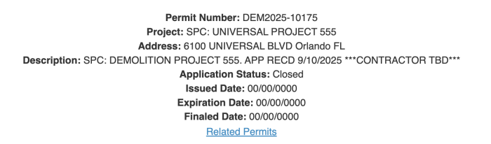 Now, based on the permit Universal filed on September 10th, the park is seeking to demolish 4.9 acres of “theme park site” in this area. While nothing has been exactly confirmed just yet, combining this permit with Universal’s statement, it seems that both of these former attractions will be demolished to make way for something new.